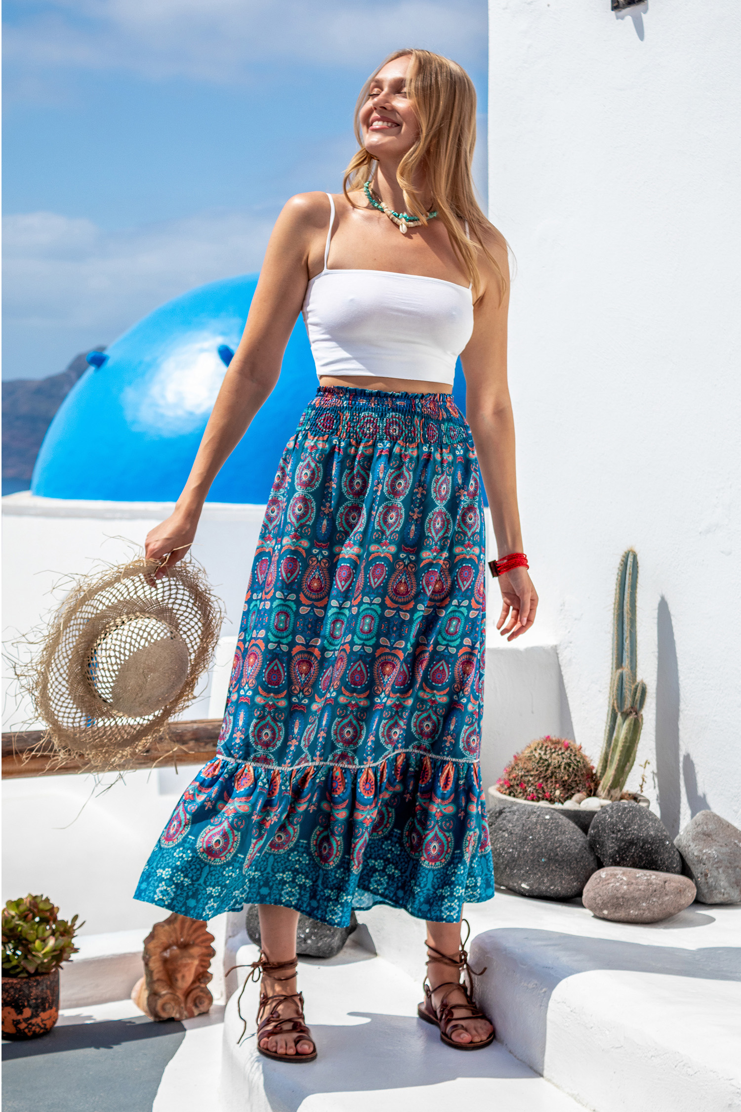 Spódnica maxi z nadrukiem w geometryczne wzory