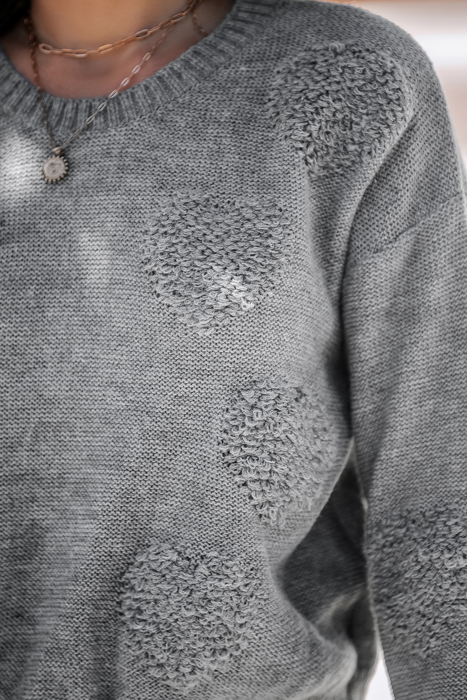 Strona głównaSzary sweter z długim rękawem w kształcie serca