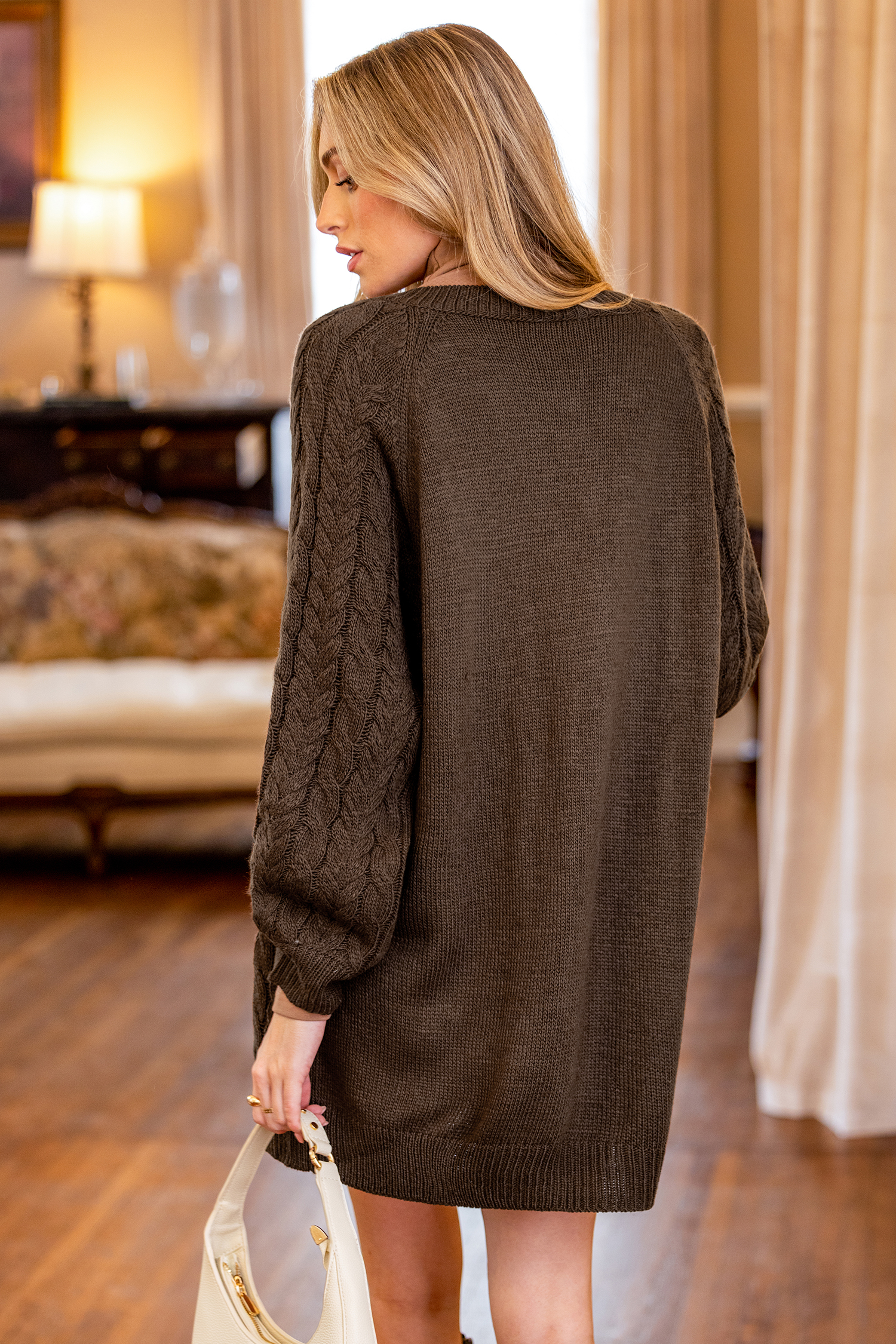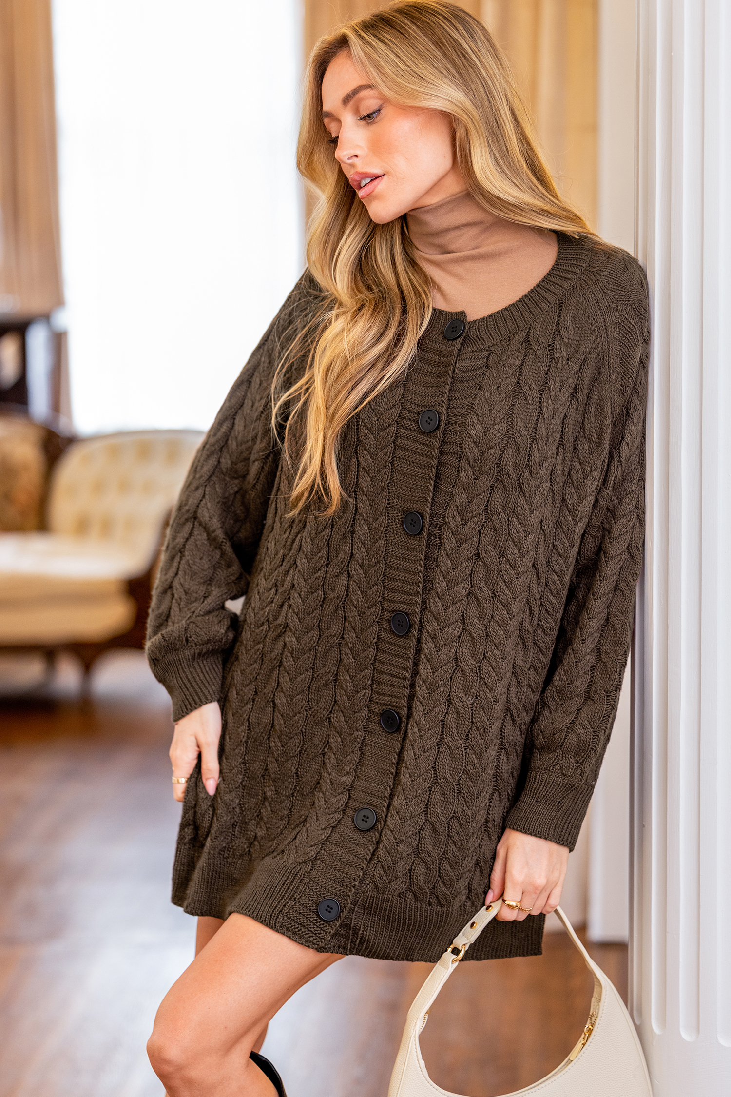 Kardigan Morning Coffee Brown to propozycja na wygodne poranki i przytulną atmosferę! Okrągły dekolt, długie rękawy i luźny krój sprawiają, że jest on niezwykle wygodny i idealny do noszenia na kilka warstw.